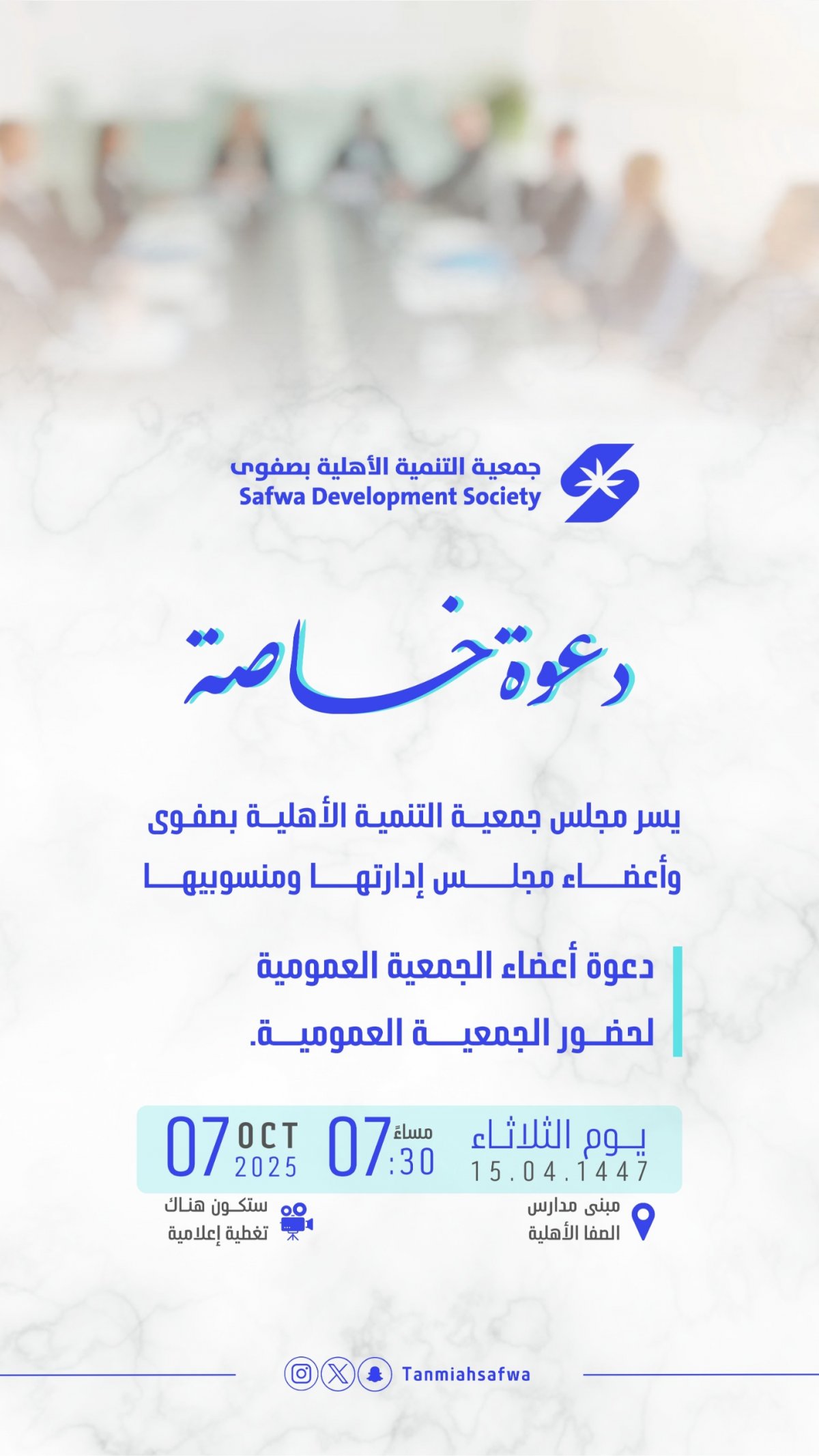جمعية التنمية الأهلية بصفوى تعقد جمعيتها العمومية العادية وتُقر خطتها التشغيلية وميزانيتها لعام 2025